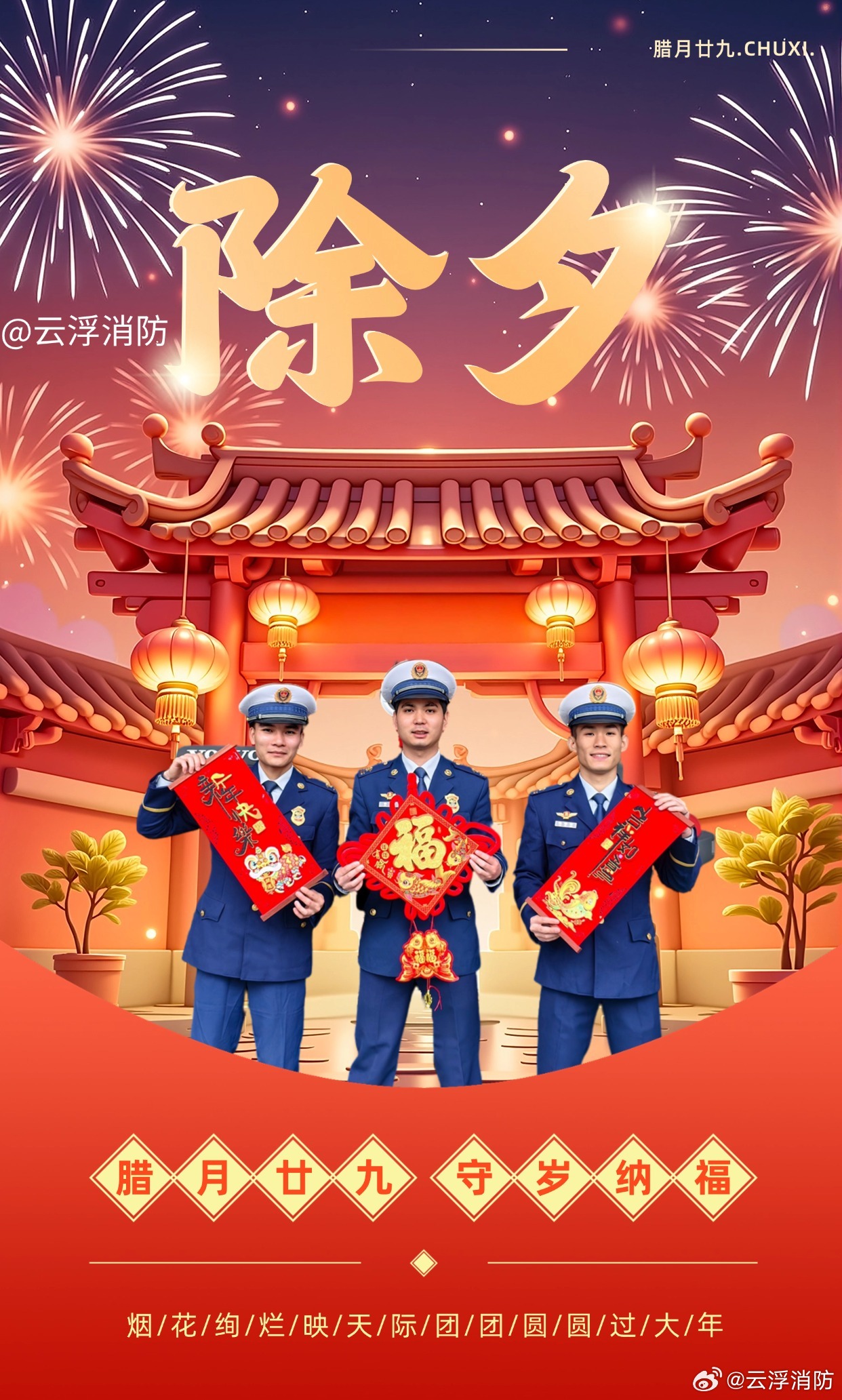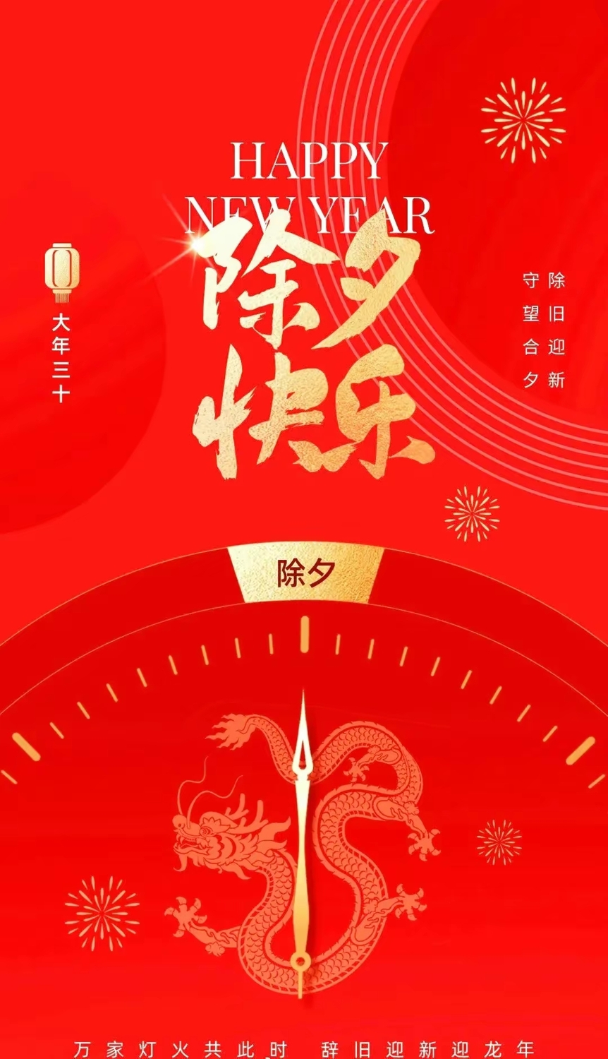 今天是除夕,一个充满传统与现代交织的温馨之夜,让我们共同珍惜这个特殊的时刻,感受家庭的温暖、时代的进步和文化的魅力,让我们携手共进,共同迎接新的一年的到来,共同创造更加美好的未来,在这个美好的夜晚,让我们一起倒数迎接新年的第一缕阳光,祝愿祖国繁荣昌盛,人民幸福安康!